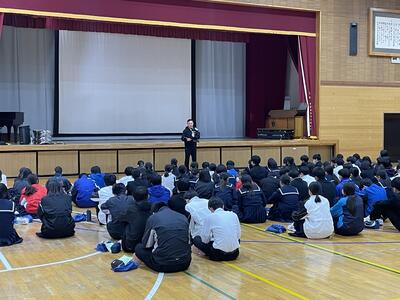 いよいよ県立高校入試が間近に迫ってきました。3学年では、県立高校入試に向けた事前指導を実施しました。校長先生や3学年の先生からお話をいただき、生徒たちは受験に向けてより一層気持ちを引き締めていました。どの生徒も全力を尽くして頑張ってほしいと思います。