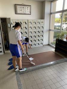 続いて清掃です。泉丘中学校は無言清掃に力を入れております。