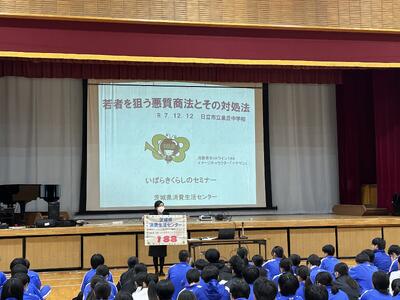 いばらきくらしのセミナー 投稿: 作成者 (13:49) 3年生を対象に「いばらき くらしのセミナー」が実施されました。「中学生のかしこい消費生活」をテーマに、インターネット等のトラブルの現状、被害に遭わないためにどうすればいいのか等を学びました。これから社会科(公民分野)で学習する内容なので、効果的な予習になりました。 Tweet -