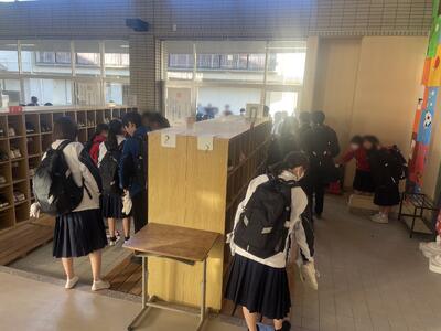 下校の様子 投稿: 承認者 (17:12) 本日は、生徒の健康状況を鑑み、感染症等の感染拡大防止の観点から部活動なしで下校となりました。 2/6(金)まで部活動は実施せず、自宅で静養することになります。 各学級では、下校時に交通事故に気を付けること、無理をせず体調が悪いときにはしっかり休むことなどが伝えられました。 2年生は宿泊学習、3年生は県立高校入試が控えています。 一人一人が何のための”部活動なし”なのかを考え過ごしてほしいと思います。 Tweet -